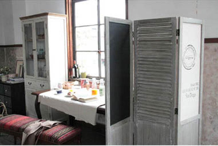 天然木を組み合わせたスクリーンで、ナチュラルにもレトロな雰囲気にもなります。