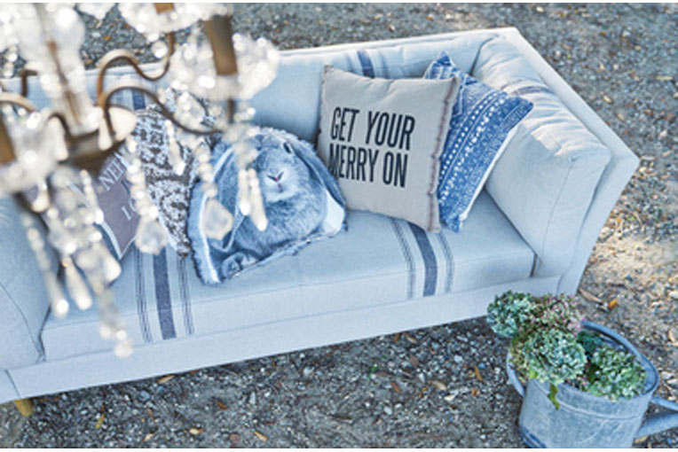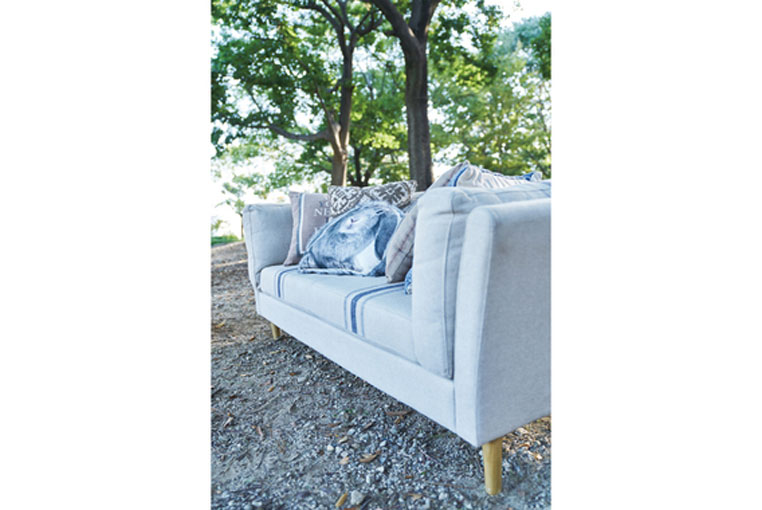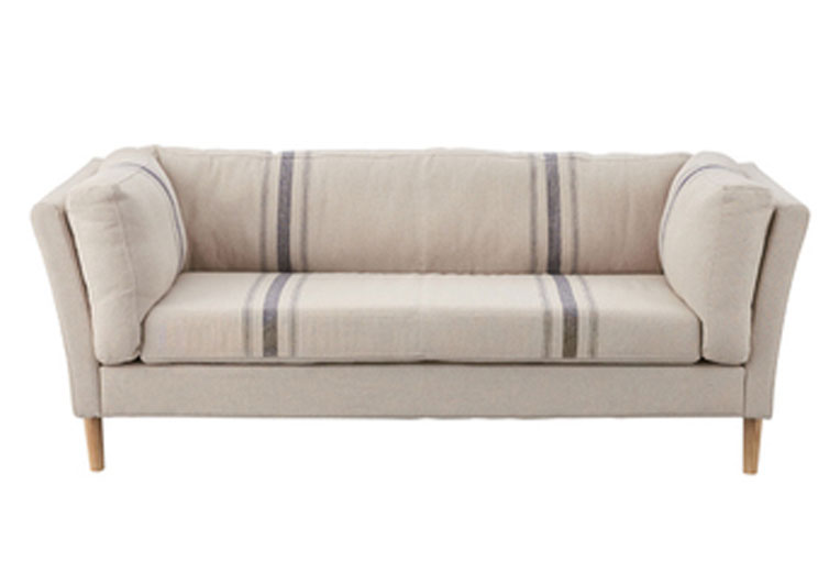 リネン生地を使用した、ナチュラルな印象のソファ。