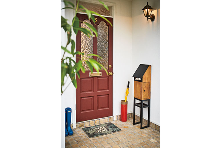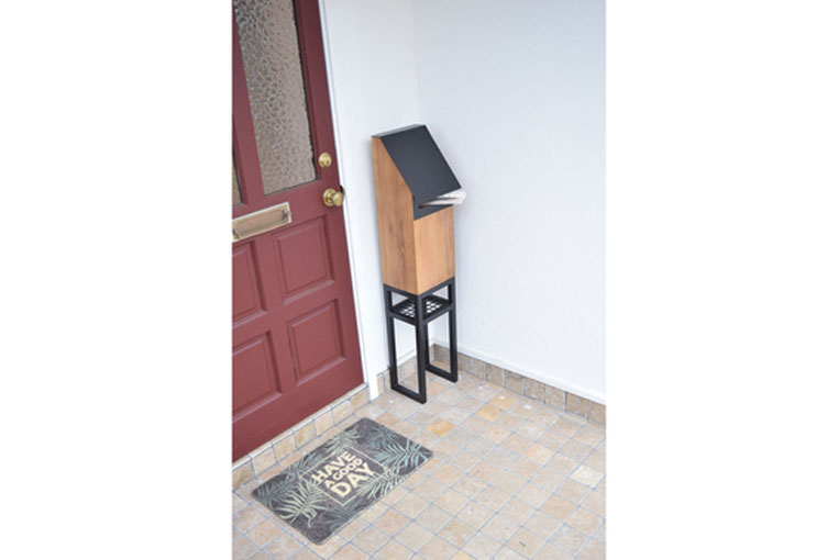 天然木とスチールを組み合わせた、シンプルな佇まいとレトロさを兼ね備えたポスト。