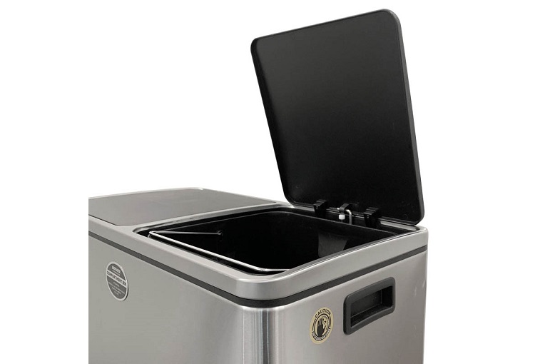 クールで優れた機能性をひしひしと感じさせるスマートな容姿の分別ゴミ箱。横並びで二分別するスタイルです。それぞれがペダルオープンで30リットルの容量があるので、ごみが多く出るファミリー世帯や少人数のオフィスなどで使いやすいゴミ箱です。左右共にインナーボックス付属です。