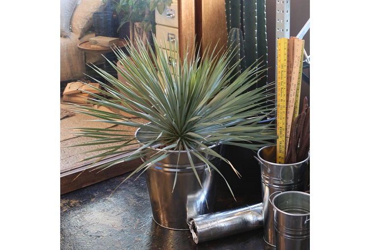 屋内・屋外どちらにも対応できるバスケット。無骨ながらシンプルなデザインがグリーンを引き立てます。