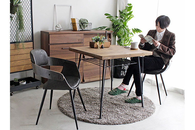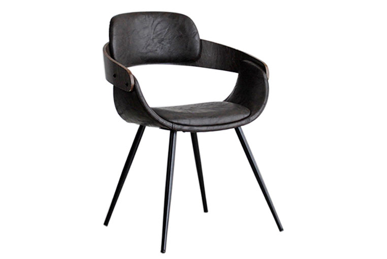 曲木アームとスマートな黒スチールの組み合わせがかっこいいアイテム。