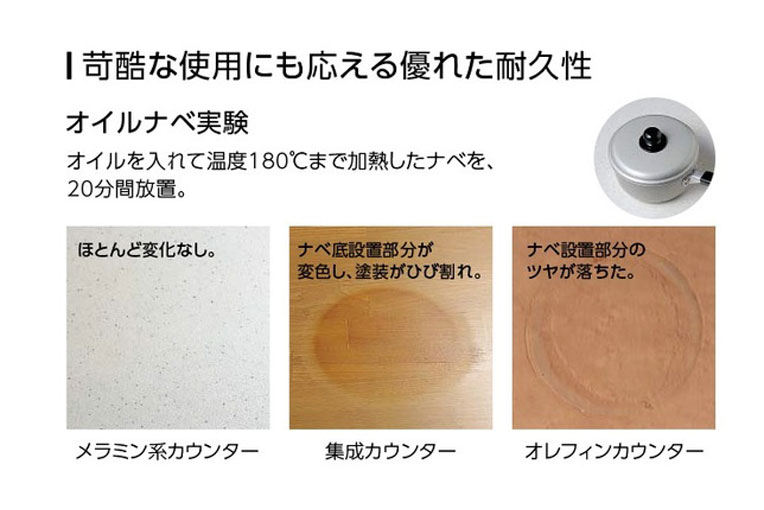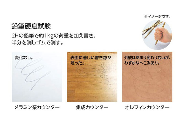高機能素材として用いられるメラミン材を天板に用いました。人が良く触れる場所なので、アイカ社製の指紋レスメラミン化粧板「セルサス」を使用しております。