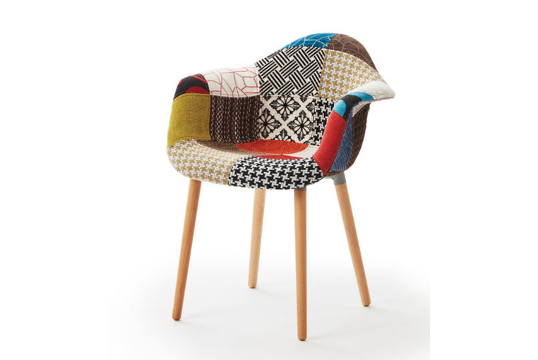 丸みを帯びたシンプルなフォルムに、カラフルなパターンのファブリックを張りました。