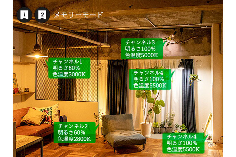 ・メモリー設定(お好み明るさ、色温度設定)