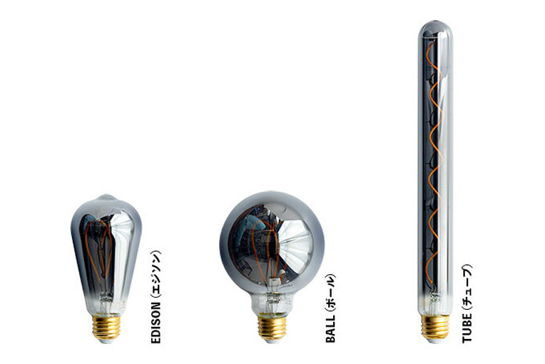 ガラスの形状はEDISON(エジソン)| BALL(ボール)| TUBE(チューブ)の3タイプを用意しました。