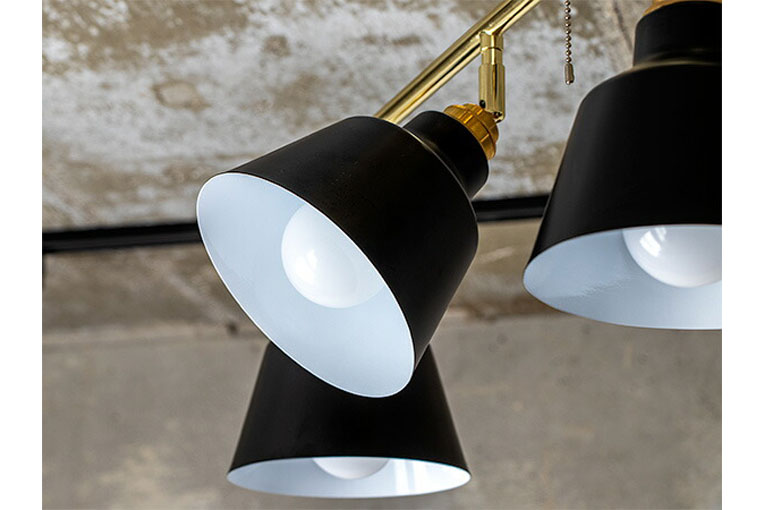 シェードの内側はホワイト塗装なので、光を効率よく反射させ明るさを補い、4つのスポットライトはそれぞれが独立して角度調節できます。