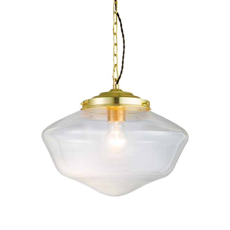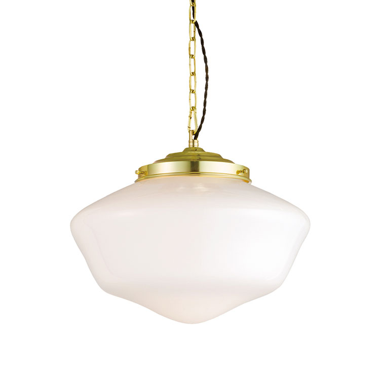 少し大きめのガラスシェードがレトロな趣きのペンダントライトです。滑らかな曲線の美しいデザインをお楽しみください。