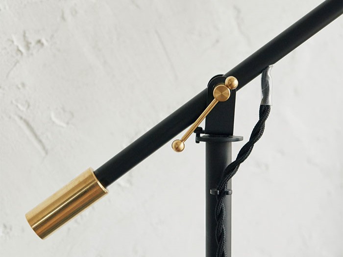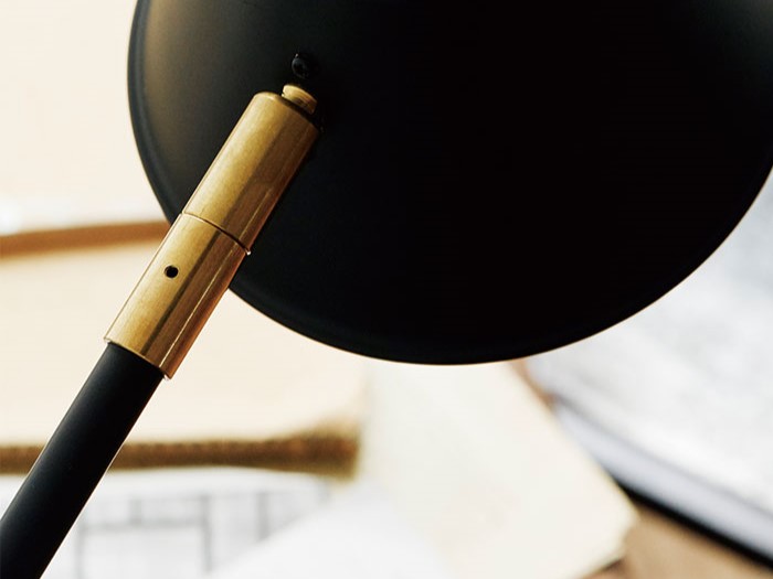 ジョイント部分を固定することでデスク周りでも使いやすい仕様になっています。BKと真鍮とのコントラストが特徴です。