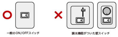 ※ 調光機能付きの壁面スイッチがあるお部屋では調光機能を使用しなくても故障の原因となりますのでご使用にならないでください。