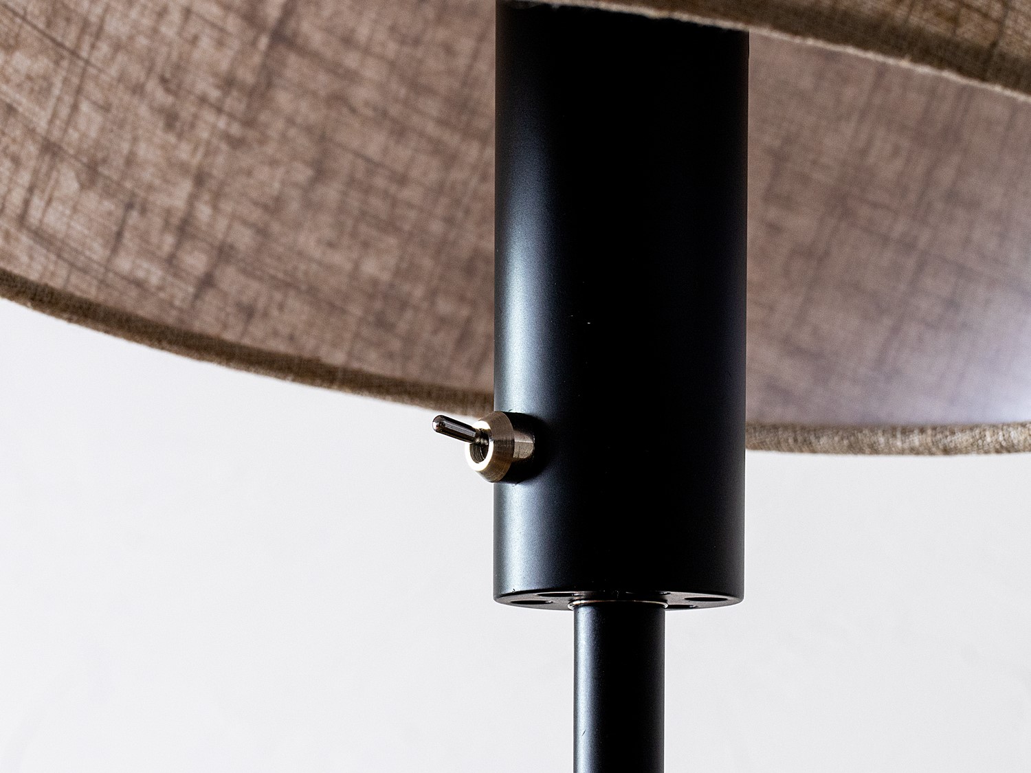 スイッチを入れるとファブリックシェードが光を柔らかく拡散。明るすぎず落ち着いた雰囲気にしてくれます。