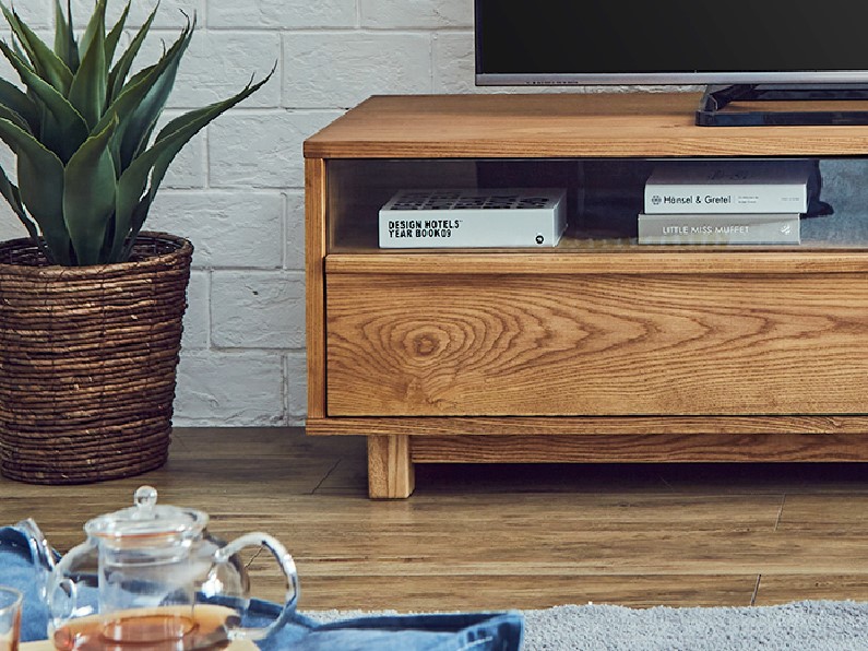 木の風合いを楽しめる引き出しタイプのTVボード。シンプルながら、木の風合いを楽しめるTVボードとなっています。