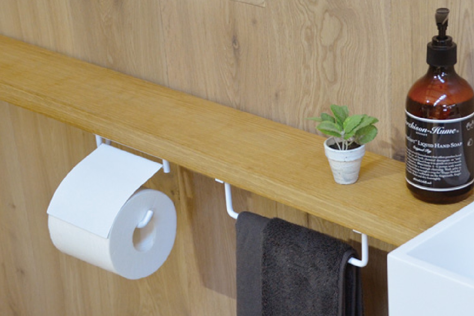 機能美と無垢の家具との親和性を追求し、角の仕上がりなどの細かいデザインや表面の仕上げにこだわりました。使い込む程に家具に馴染み、個々の表情となります。シンプルなデザインにこだわりながら、カバー付きの使いやすさも重視した設計。こちらは天付け用タイプになります。