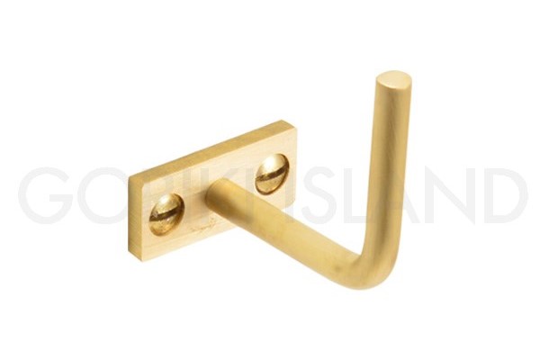 角形台座に細めの丸形バーフック。太めの紐もしっかり掛けられる安心の奥行幅が実用的。曲面の角度にこだわることで、線の美しさを実現しています。ビスはマイナスビスを使用しているため、デザインに溶け込みます。
