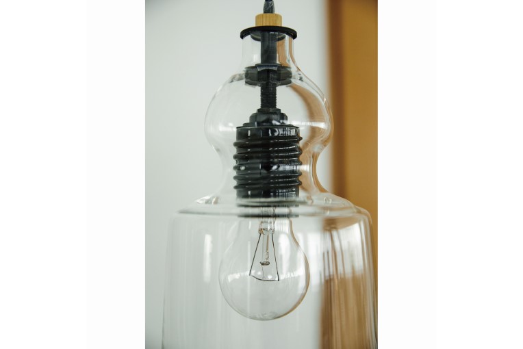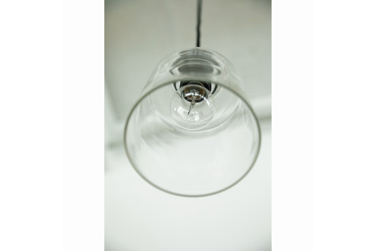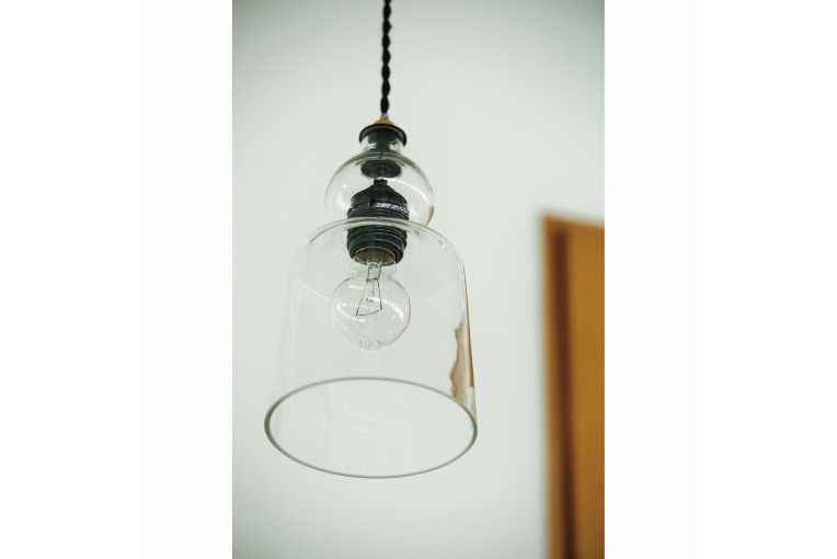 上部の丸みや中間がくびれたフォルムは瓢箪を彷彿するガラスペンダントライト。 普天的な素材のクリアガラスとネジリコード、ネジリソケットのBKがアクセントになっています。 場所を選ばないサイズ感も〇です。