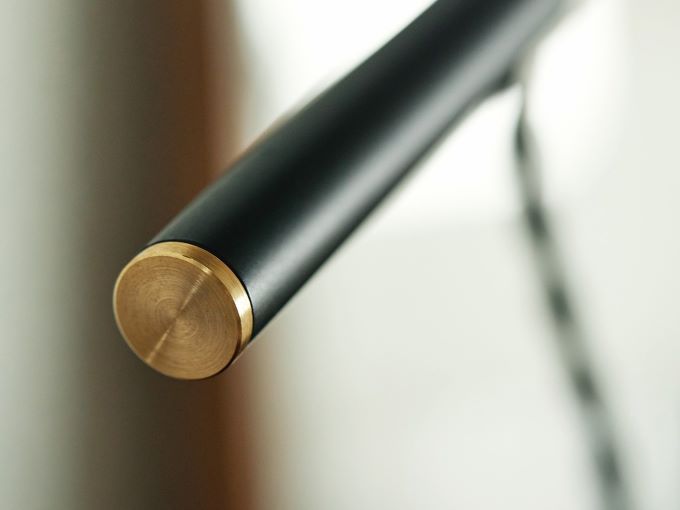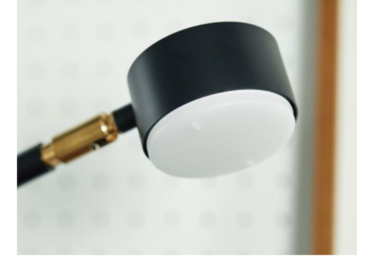 コンパクトLED電球仕様のスタンドライト。 センターの真鍮パーツを組み替えることで高さ、横へのスライドを調整することができます。 ヘッド部分も真鍮自在機によって角度を変えてご使用いただけます。