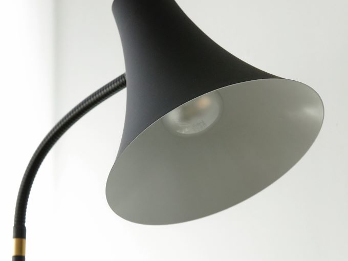 テーブルなどに固定して使用するクランプ式のライトです。 灯具部分はフレキシブルパイプにより自在に可動が可能です。 吊り元のない場所には使い勝手が良いライトです。