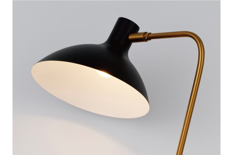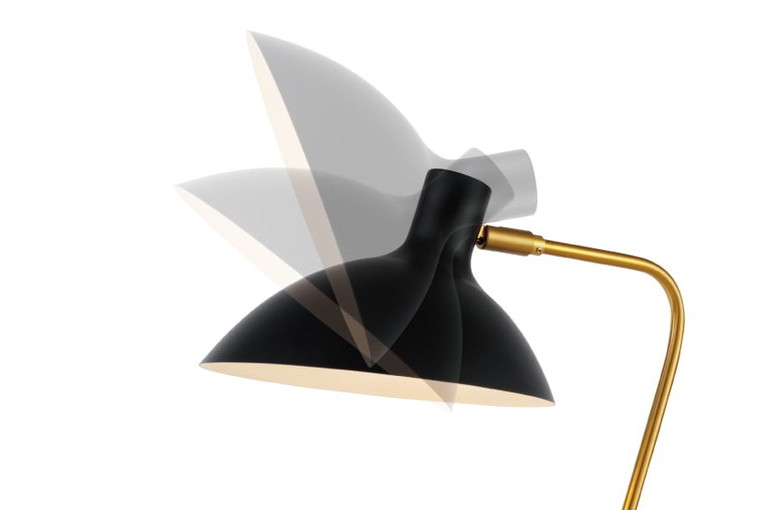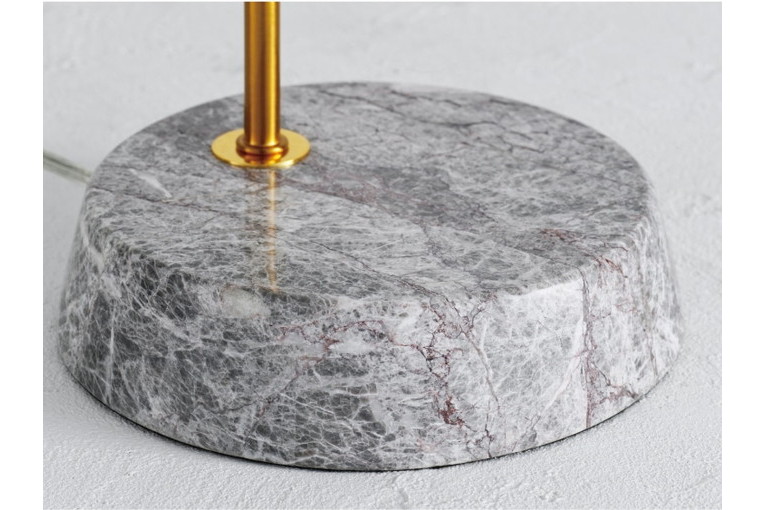 天然大理石のベースから独特なラインを描きながら伸びるアームと、斜めにカットしたマットブラックのセードがエレガントなバランスを生み出すデスクライト。