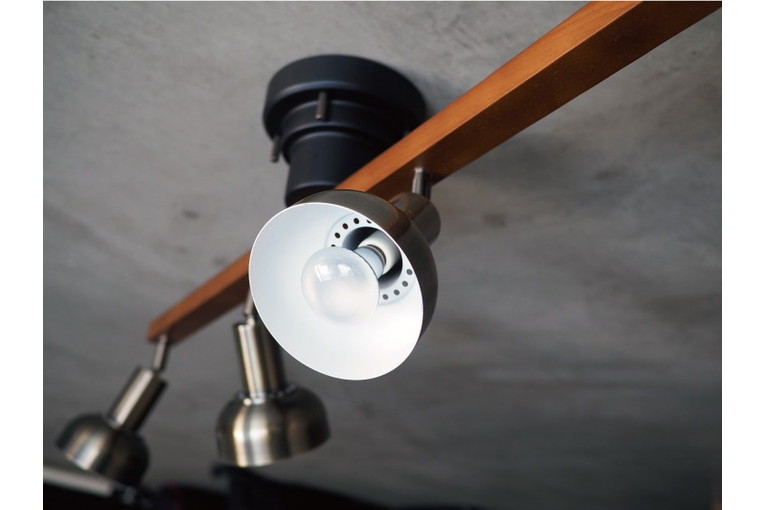 スポットライトのように光を届けることができる可動式の4つのセードが、リビングなどの広い空間を効率よく照らします。