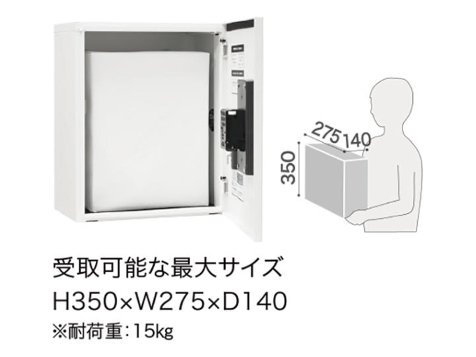 受取可能な最大サイズ:H350×W275×D140mm ※耐荷重:15kg