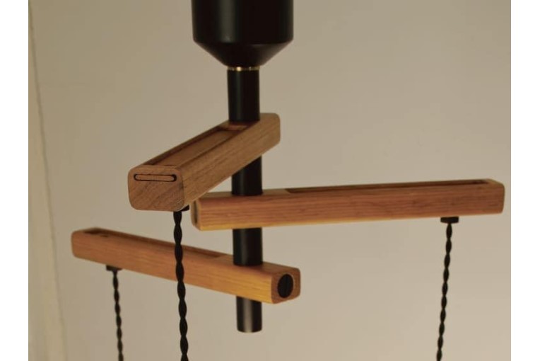 ウッドアームの中は空洞になっており、コードを収納できる構造となっています。ガラスセードの位置を変えて、シーンに合わせたスタイリングをお楽しみいただけます。