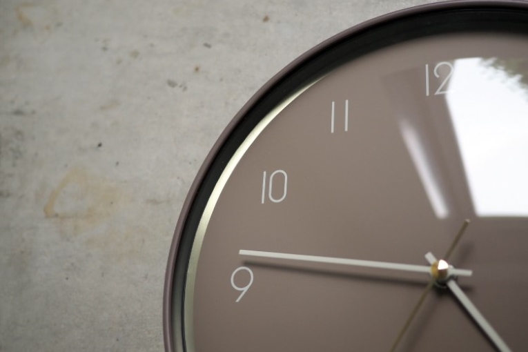 ワントーンのニュアンスカラーにゴールドを効かせたモダンなウォールクロック。落ち着いた色合いが上品なムードを醸し出します。
