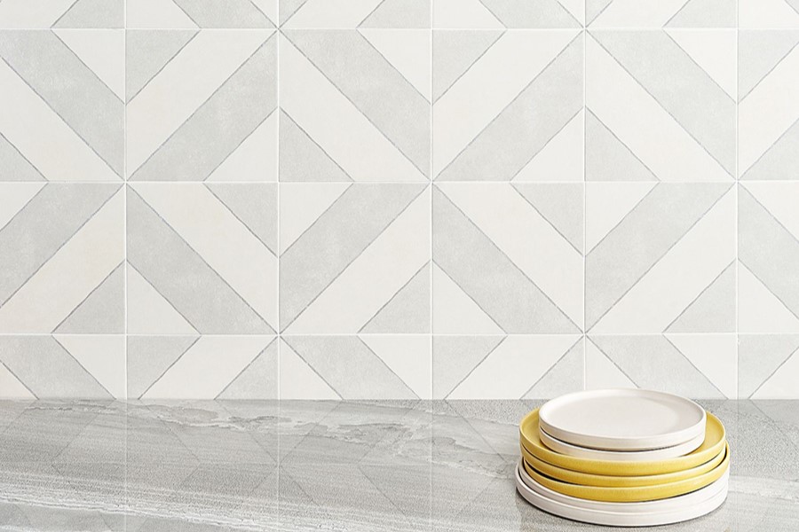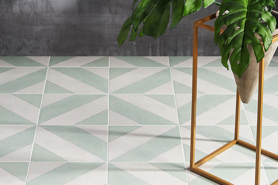 対角線とダイヤモンドの張りパターンで印象が変わる楽しいデザインタイルです。