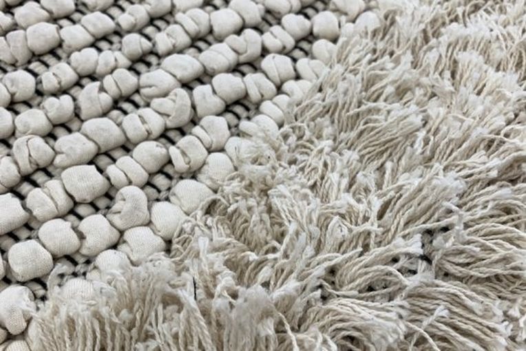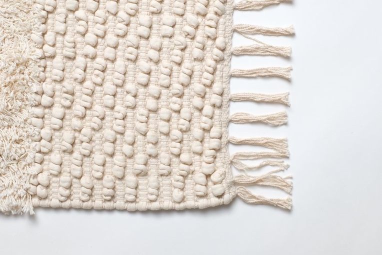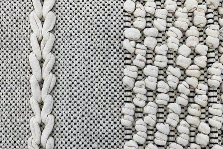 横糸にニット素材を織り込み、ポコポコとした凹凸で豊かな表情をつけました。
