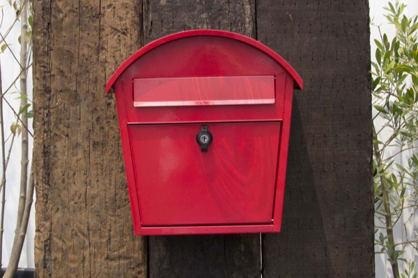 アーチした屋根、ツヤのある塗装、レトロで可愛らしさ満点のポストです。投函口は本体正面となります。