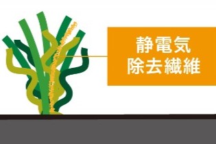 人工芝に「静電気除去繊維」が織り込んであるため、帯電しにくくなり、静電気の発生を軽減。