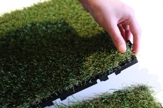 ベースの隙間から雨水が抜け、雨が降っても人工芝が原因で水がたまることがなく、設置面との間に空気の層ができ、乾きやすい。