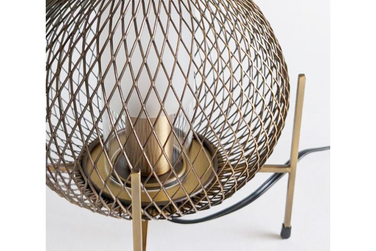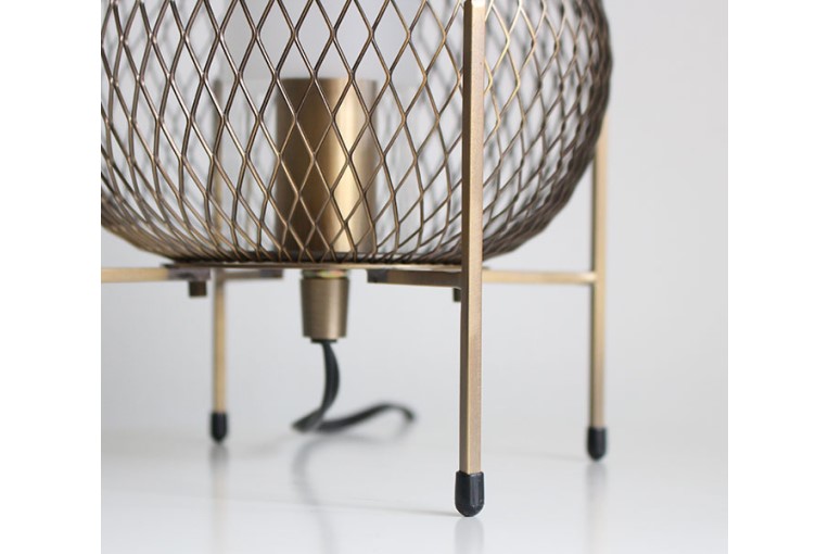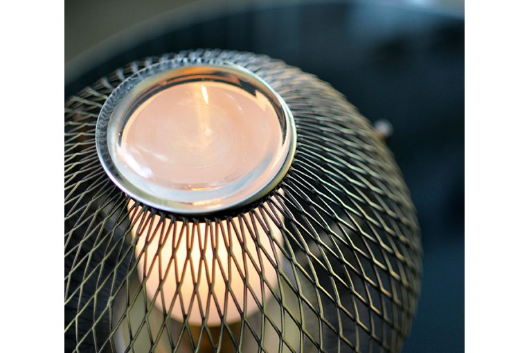 落ち着いた大人の空間にもマッチするアンティークゴールド仕上げの無骨なメタルメッシュから、幻想的な光と影が広がるナイトランプです。