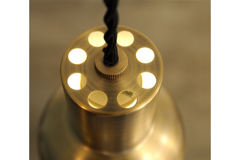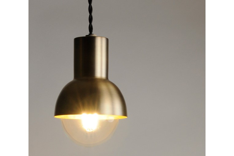 マットな質感のブラック、または金属の風合いを生かしたゴールドのシェードに、レトロな雰囲気漂うツイストコードを合わせたモダンなアンティーク調のデザインです。