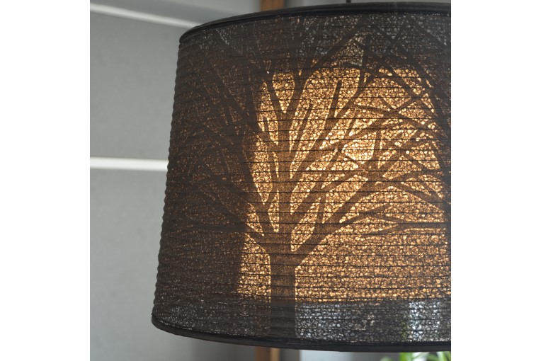 内側の和紙はきめ細かく、シェードを通して周囲を均等に照らします。対して外側のシェードは荒い繊維によって配光を邪魔することなく、ぼんやりと木立の柄を浮かびあがらせます。