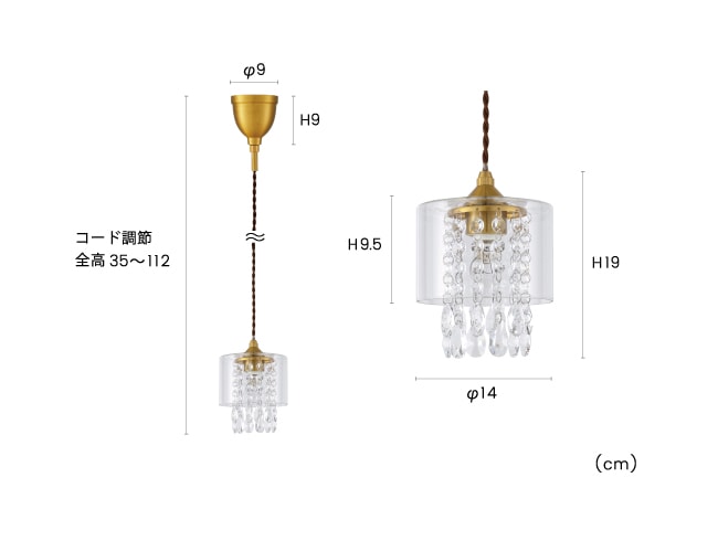 ジュエリーのように連なるクリスタルをガラスセードで包んだエレガントなミニシャンデリア。
