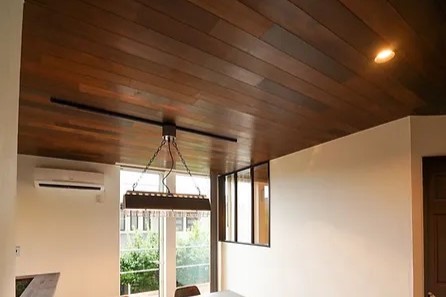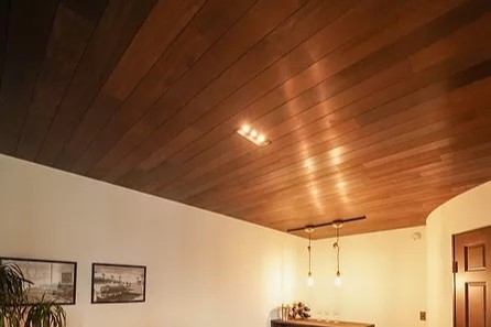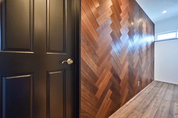 壁や天井の仕上げ材として、アンティーク家具のような艶と深みを持つパネル材が、クラシカルな中にもシンプルでフレッシュな世界観を演出します。