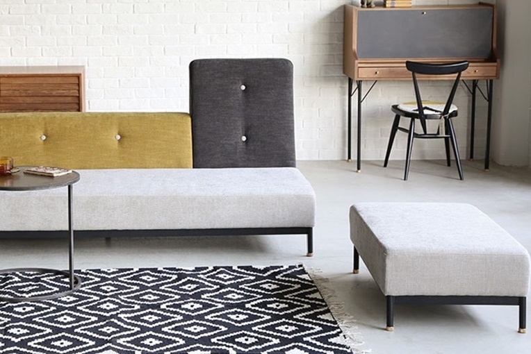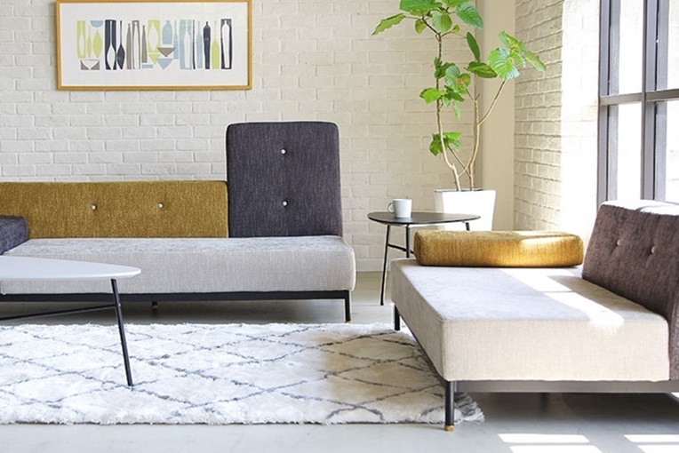 アシンメトリーデザインと、色違いのクッションの組合わせがユニークなロータイプソファです。