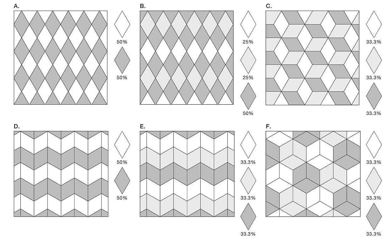 カタチとしての美しさが際立つダイヤ形状は、色とパターンの組み合わせでさまざまな幾何学模様に展開が可能。