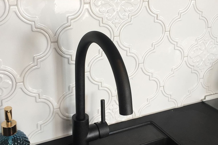 アラベスク模様のエンボスが浮かび上がった美しいランタン形状のタイル。