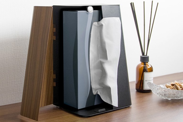 キレイな木目転写スチールのデザインが特徴のスタイリッシュなペーパースタンド『TEER(ティール)』。