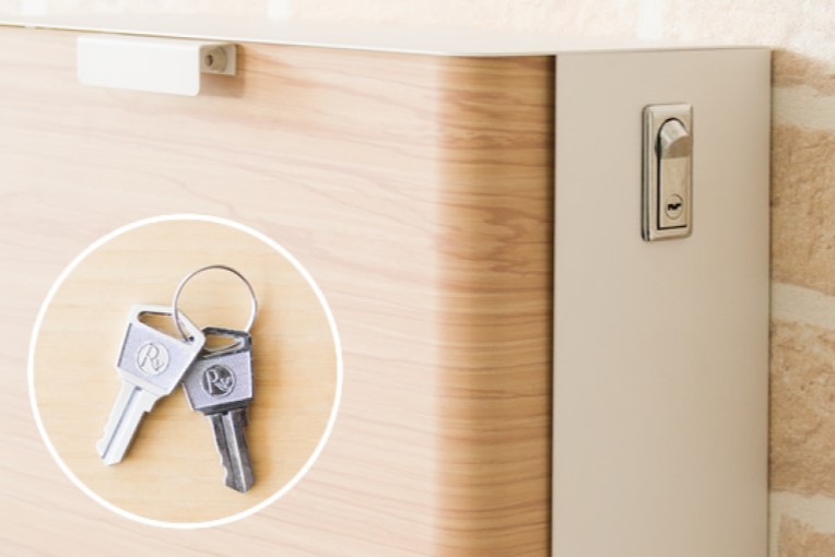 取り出す時は、付属のカギを使ってロックを解除。扉が前側に大きく開いて見やすく取り出しやすいデザインです。