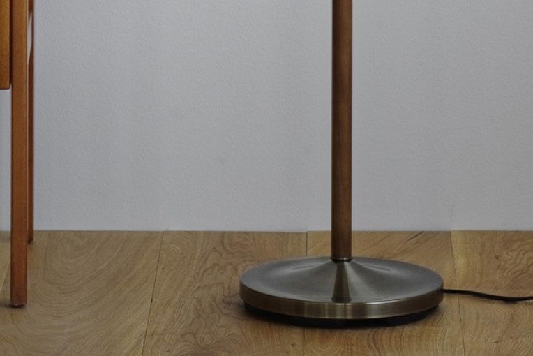 オーバルのガラスセードとスリムな支柱のミニマルなシルエットが印象的なフロアライト。