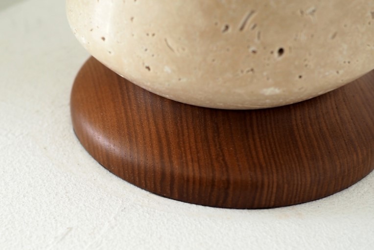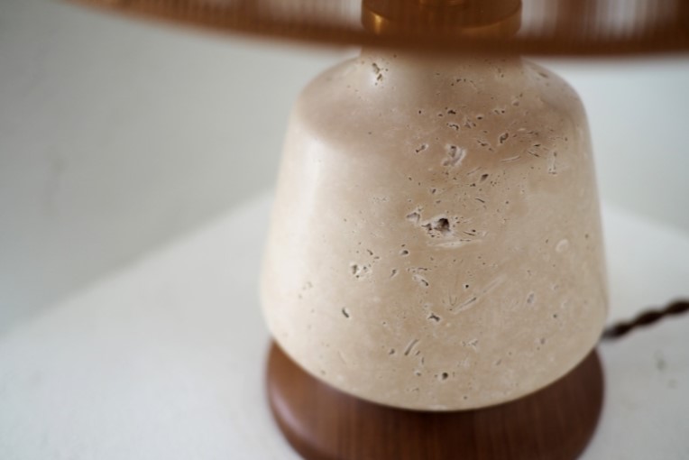 天然大理石トラバーチンに繊細なストリングスセードを組み合わせたテーブルライト。