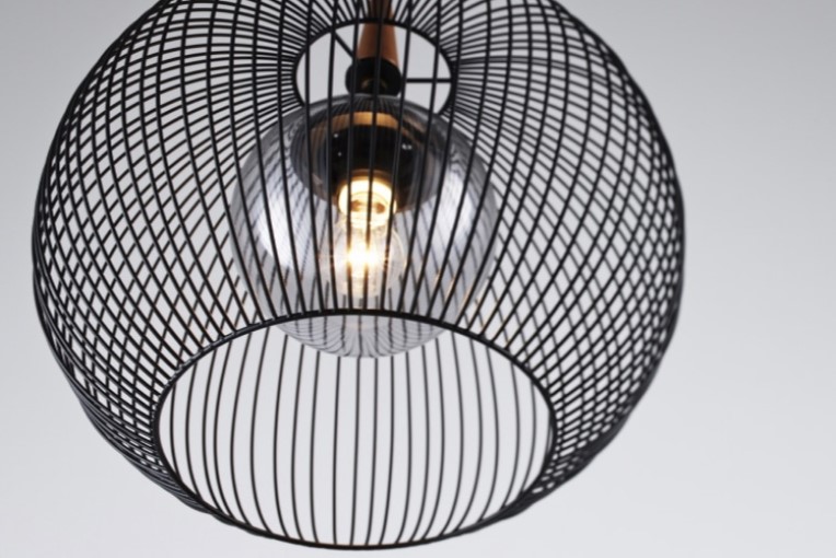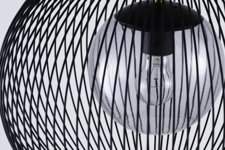 ワイヤーフレームの中でガラスセードが浮かんでいるようなユニークな構造のペンダントライト。