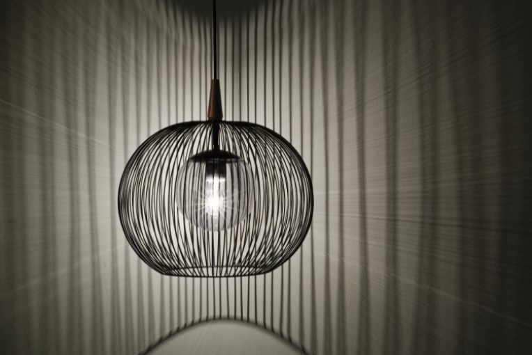 点灯させるとワイヤーセードの影がストライプ状に広がり、ドラマチックなコントラストを生み出します。