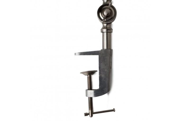 机や棚、ベッドのヘッドボード等に挟み込んで固定するタイプの照明です。