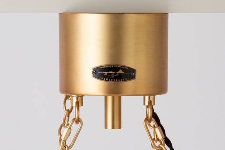 ゴールドの支柱に乳白色のガラスシェードを組み合わせ、明るく清潔感のあるデザインです。照明選びで大事にしたいのは、灯りが付いていないときでもおしゃれということ。