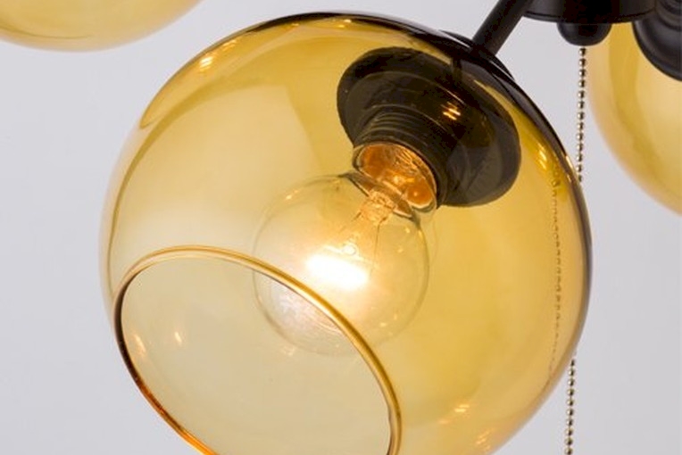 中央の柱はブラックのでこぼこしたエイジング塗装を施しており、6つの枝が出ているかのようなソケットには、アンバー色のグラスを被せ幻想的な光を演出します。6灯で明るさも確保できるのが特徴の照明です。デザイン照明なので、灯りがついていない時もおしゃれ。様々なお部屋に合わせることができます。