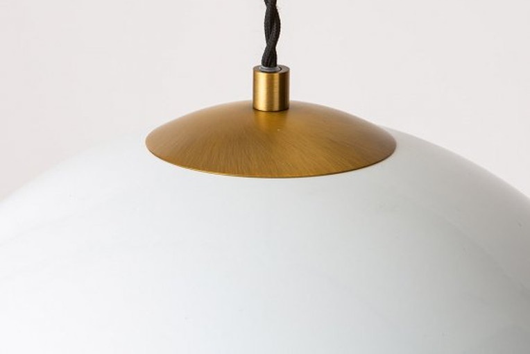 つるりとしたドーム状のシェードが、シンプルかつ存在感のある1灯ペンダントランプです。ホワイトシェードの内側は真鍮色のゴールド、ブラックシェードの内側はホワイト色にマットに塗色され、光を広げるリフレクター効果とともに、外側と内側の質感の違いを楽しめます。