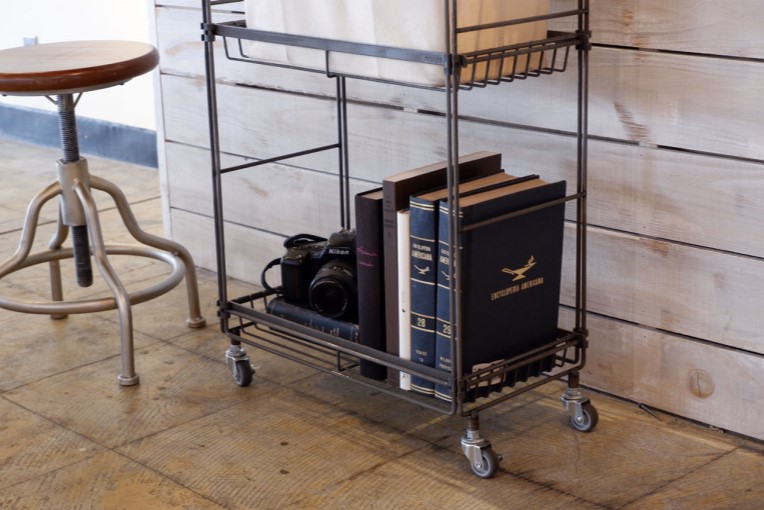 インダストリアルな雰囲気のオープンシェルフ。ユニセックスで普遍的な佇まいはどんなインテリアとも調和し、シンプルながら存在感を発揮します。